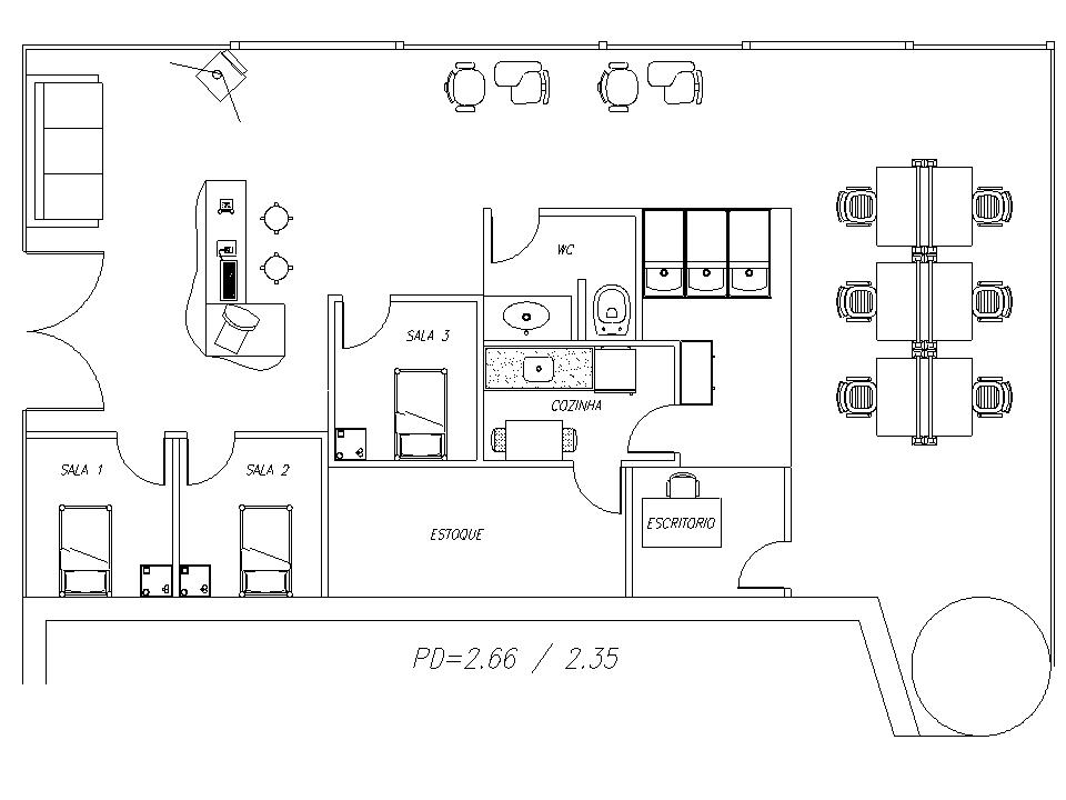 A planta baixa de um salão de beleza serve para que possamos visualizar o projeto antes de ser concluído. Por isso é importante ter um profissional para auxiliar nesta etapa do projeto. Essas duas plantas que selecionamos pertencem a FC Design de interiores.